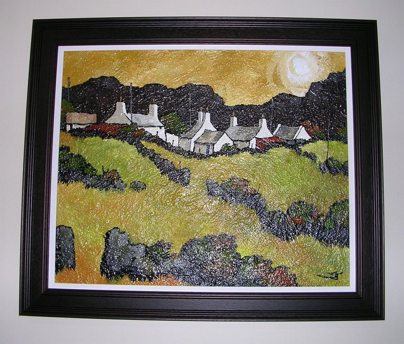 Mae’r fframio yn cael ei gyhyrchu yn ein gweithdu, hefo peiriannau modern, cyfoes. Yr harddwch o ddefnyddio ein gwasanaeth, yw bod pob ddarn o gelf yn cael ei deilwro yn unigol I siwtio y gwaith penodol. Y rhan hwyl a creadigol o’r broses fframio yw dewis y fframiau a’r mounts sy’n canmoli eich gwaith celf ac eich tast personol y gorau, felly os oes ganddo chi syniad pendant neu eisiau arbrofi hefo gwahanol arddulliau o fframiau.